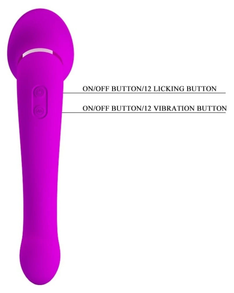 Cet accessoire de la marque Pretty Love est conçu avec deux fonctionnalités. Il est d’abord un stimulateur pour imiter un anulingus disposant d’une petite langue et de 12 rythmes de mouvements.Il est ensuite un dildo de 13 x 3cm avec 12 modes de vibrations. Fabriqué en silicone. Recharge USB
