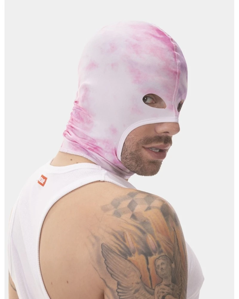 Tissu coloré en blanc et rose.Large ouverture pour la bouche. Taille unique. Composition : 85% Polyester, 15% Élasthanne