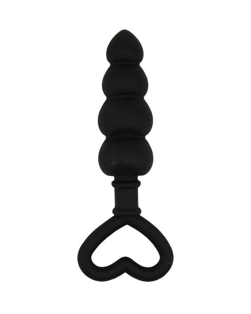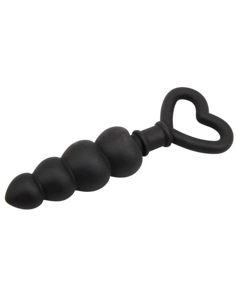 Ce plug est un sextoy de la gamme Black Mont.Il est réalisé avec une longueur insérable de 11cm. La forme possède des boules successives allant de 2.3 à 3.3cml de largeur. Avec un anneau en forme de coeur. Fabriqué en silicone
