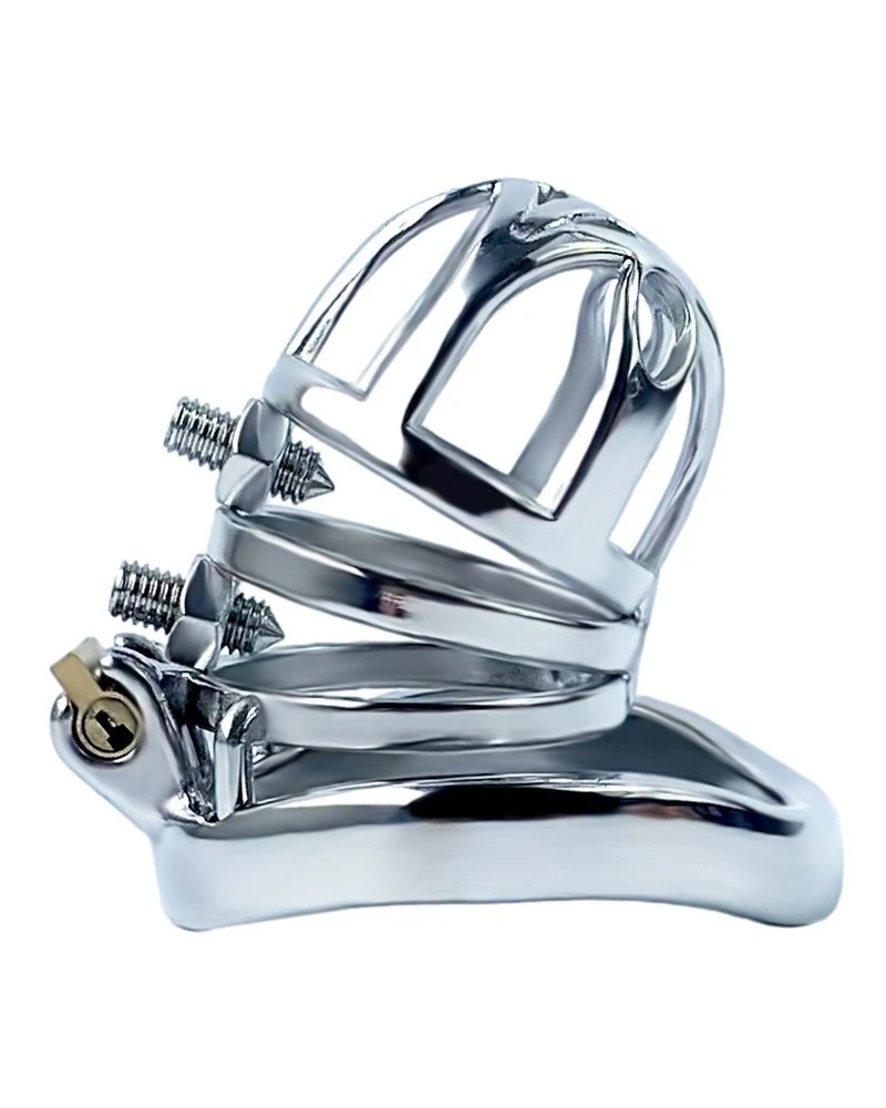 La cage de chasteté en métal DOBLE PIK limite l’érection et donne des sensations excitantes et extrêmes.Elle se compose d’une longueur de 6.5cm et d’une largeur intérieure de 3.5cm. Elle a 2 pics ajustables sur le haut. Avec l’anneau de maintien (diamètre à choisir) et la fermeture par clé