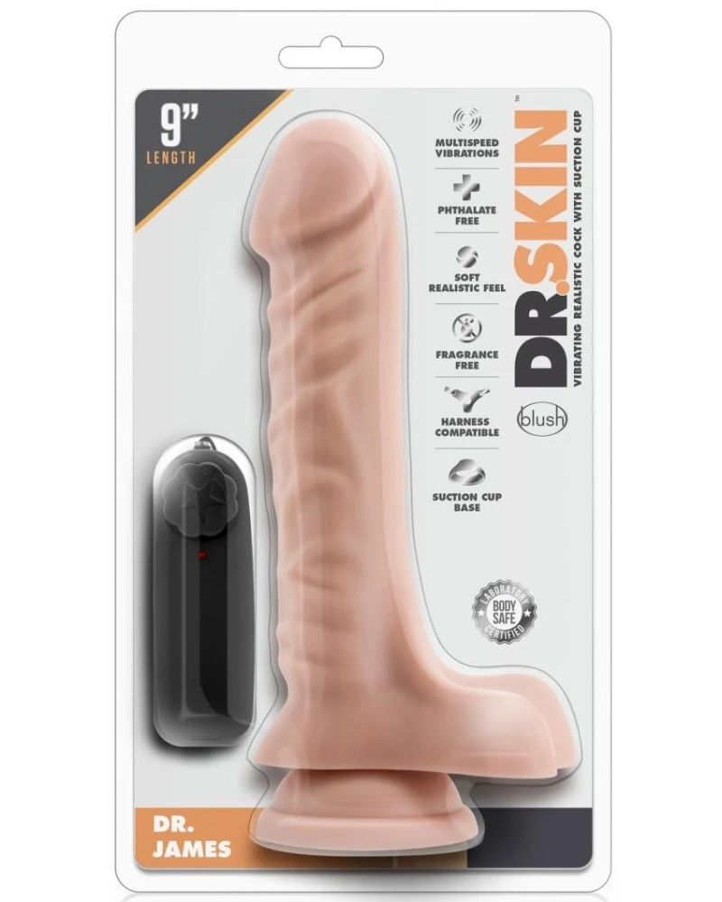 Le gode vibrant Dr James est un sextoy conçu avec une forme réaliste et une surface veinée. Il apporte des sensations intenses pendant le moment de jeu sexuel.La longueur insérable est de 17cm. La largeur est de 4cm. Les vibrations sont modulables.Avec une ventouse. En PVC