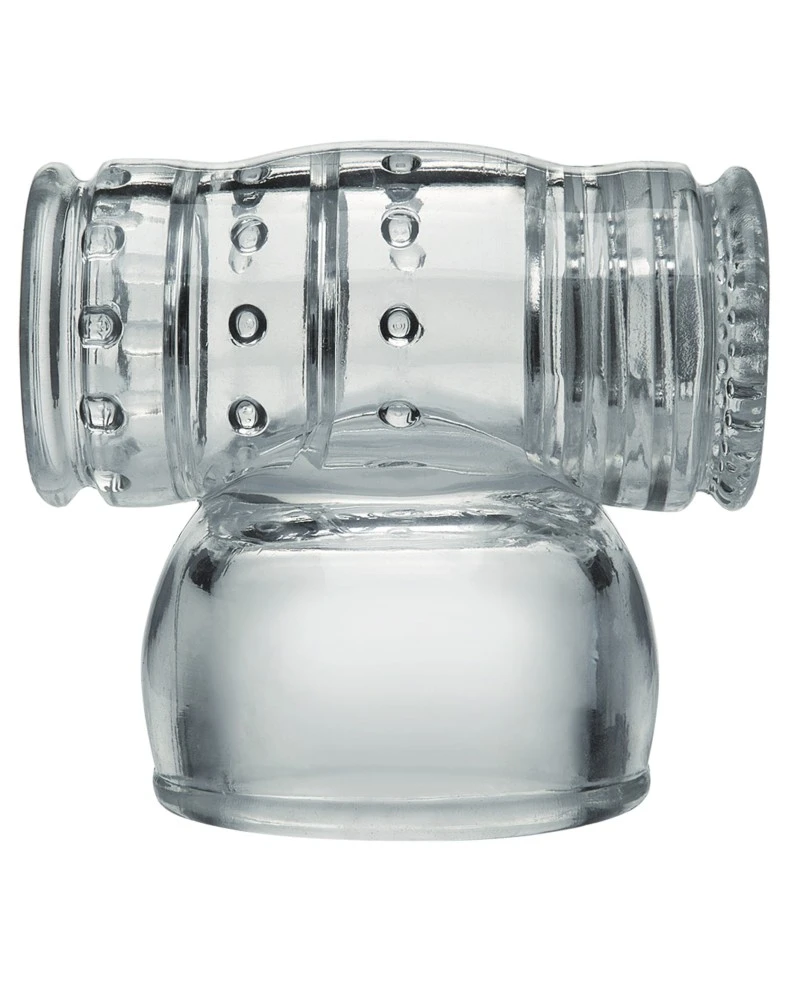 Cet accessoire de la marque Kink est un embout se plaçant sur les wands.Il se compose de deux entrées avec un intérieur texturé.Le pénis glisse à l’intérieur est est stimulé.L’embout diffuse les vibrations du wand. Compatible avec les têtes de 55 et 60mm. Fabriqué en TPE