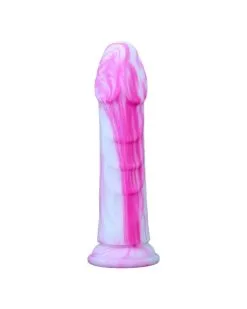 Le gode Meryl est un sextoy blanc et rose composé d’un forme originale avec une longueur insérable de 18cm.La largeur est de 5cm en haut et de 4cm ensuite.Avec une surface conçue avec des sortes de grandes écailles apportant des sensations excitantes lors de l’insertion. Avec une base ventouse. La structure est souple.Fabriqué en silicone