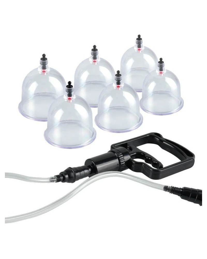 Voici un accessoire sm original. Il est constitué de 6 body cups qui permettent de faire gonfler certaines parties du corps et de faire succion.Vous avez tout loisir pour choisir les endroits… Composition:- 2 Cups de 5.7cm de diamètre – 2 Cups de 5 cm de diamètre – 2 Cups de 4 cm de diamètre- le système pour faire le vide d’air