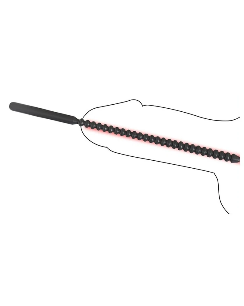 Cette tige à urètre est réalisée en matière silicone souple. Elle mesure 17cm de longueur insérable (24cm au total).Le diamètre est de 9mm et la surface est crénelée et arrondie. L’insertion est alors très excitante à l’intérieur du pénis.