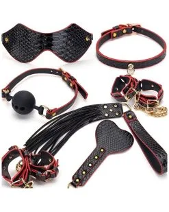 Acheter Le Kit Bdsm 7 Pièces Caiman noir-Rouge sur La Boutique du Hard