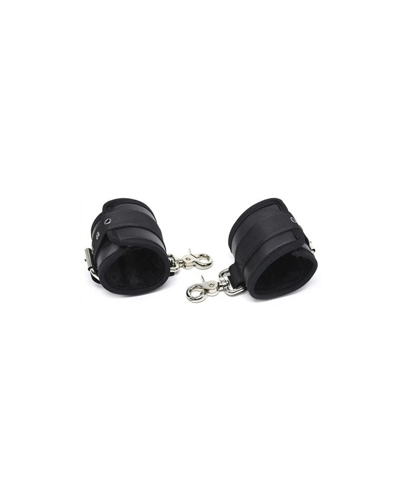 Ces menottes noires sont conçues avec : un intérieur « fourrure » donnant du confort un extérieur en simili les attaches en métal pour ajuster facilement (jusqu’à 60cm). Idéal pour la soumission