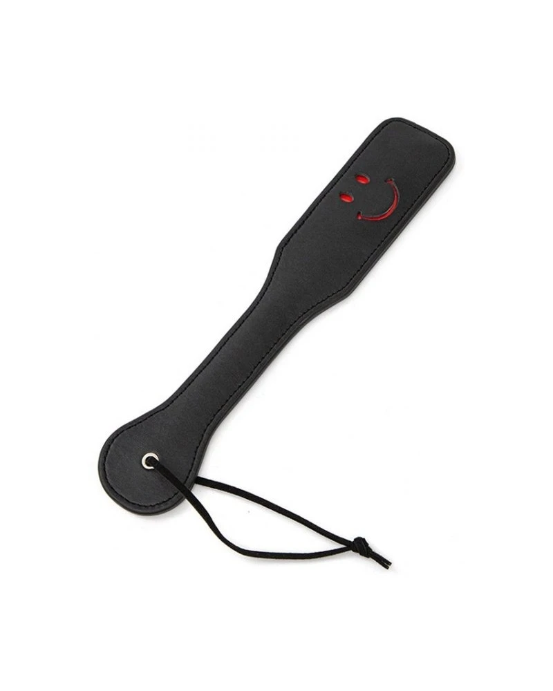 Ce paddle Smile Spank est un accessoire de 32cm de longueur totale avec un smiley souriant.Il amène du fun dans le le moment SM. La partie haute mesure 14cm de longueur avec une largeur de 6cm.Il est fabriqué en simili