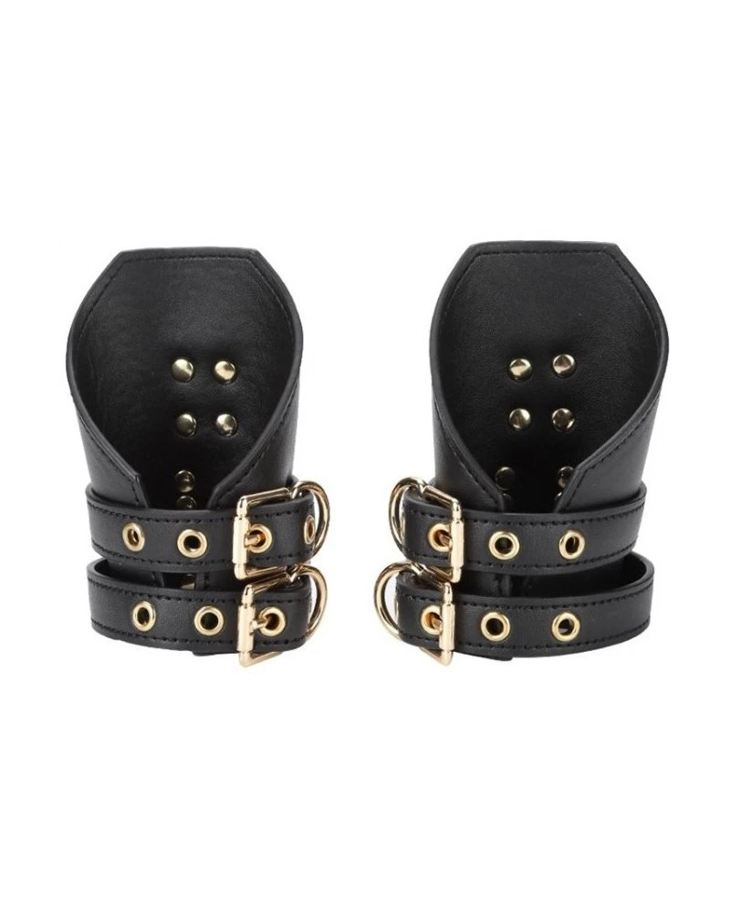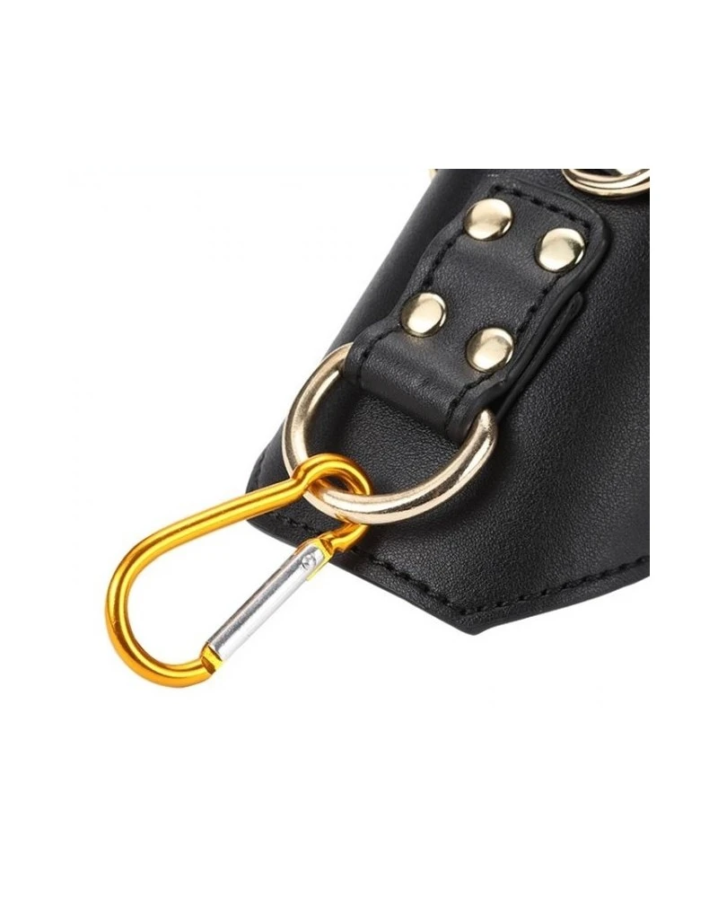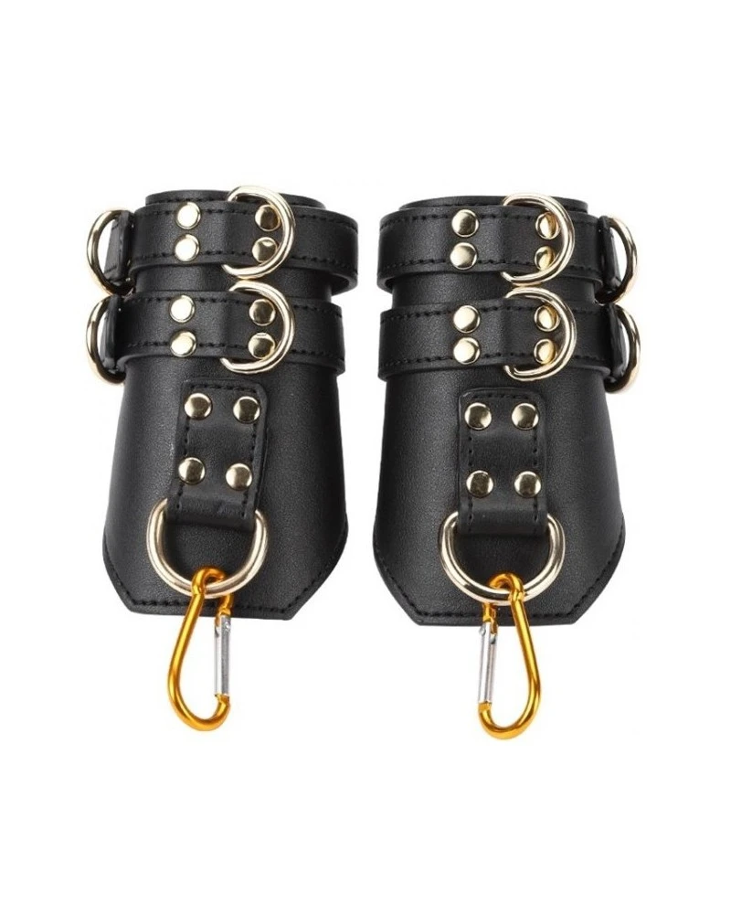 Ces suspensions pour les poignets sont réalisées en matière simili avec les attaches dorées en métal.Elles permettent de suspendre les mains et maintenir le partenaire dans une position de soumission. Hauteur de 12cm.Tour de poignet ajustable de 19 à 25cm. En simili