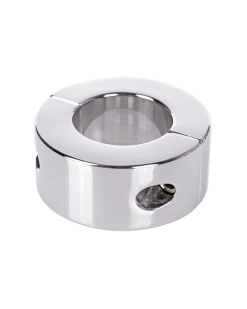 Ce ballstretcher de la marque Kiotos est un anneau pénien en acier inox qui permet de peser sur les bourses et les étier vers le bas.Il est composé de: une hauteur de 30mm qui permet de tendre la peau des couilles une épaisseur de 15mm le diamètre intérieur de 38mm le système de fixation par vis. Il possède un poids de 310 grammes.Fabriqué en métal acier inox