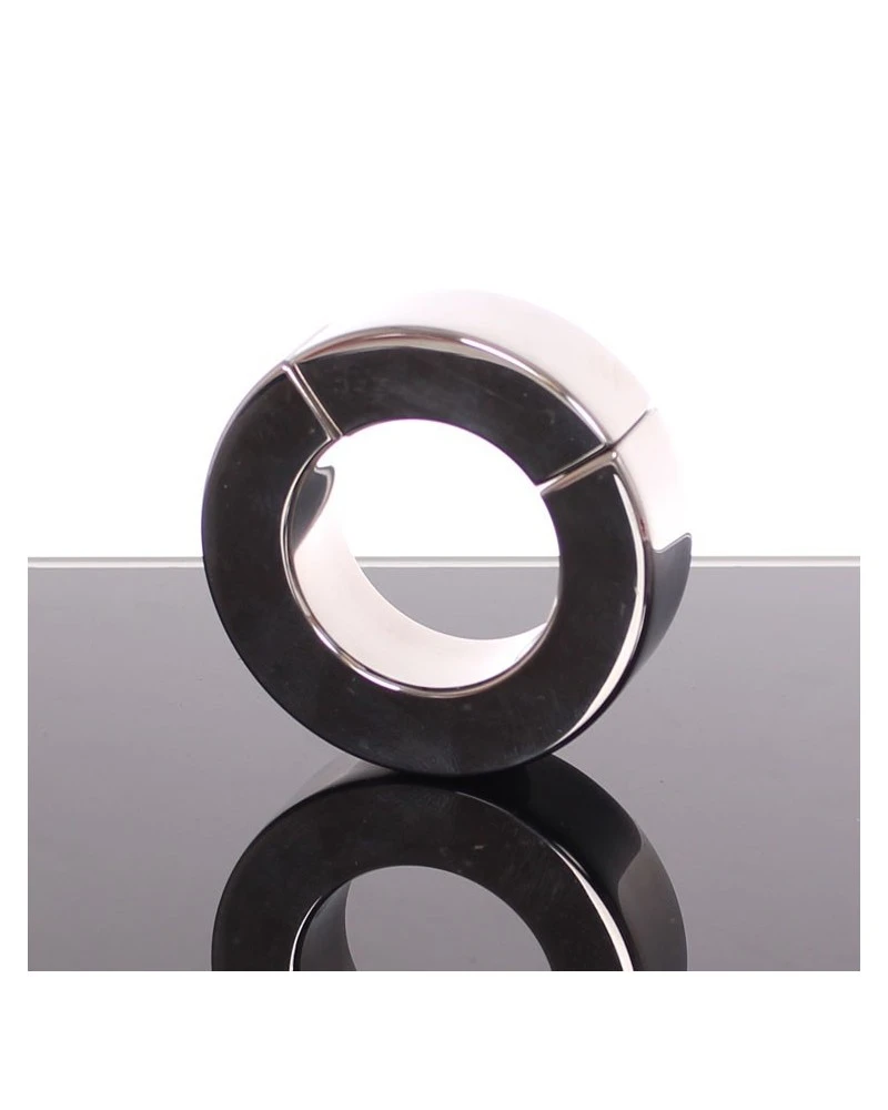 Ce ballstretcher de la gamme Magnetic est un sextoy en métal mettant en valeur les bourses. En effet, il vient allonger les couilles par sa hauteur de 2cm et son poids de 325 grammes. La largeur est de 15mm. Son diamètre intérieur est de 35mm.Il est conçu avec un système de fermeture par aimants. En acier inox