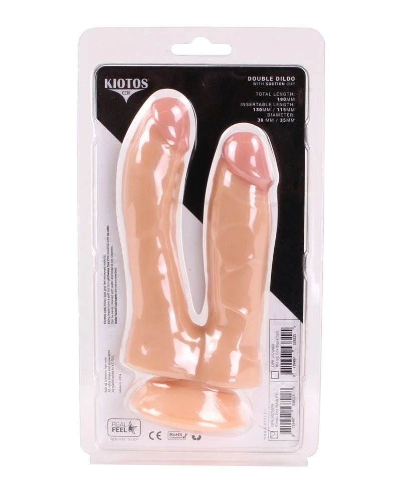 Le double gode Cox est un sextoy conçu avec deux sextoys pour simuler une double pénétration.Il se compose de : un dildo de 13cm de longueur insérable avec une largeur de 3cm un autre gode de 11.5cm de longueur insérable avec une largeur de 3.5cm. Avec une ventouse. Fabriqué en PVC