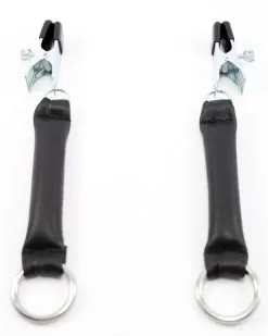 Ces pinces pour les tétons sont proposées par la marque Kiotos. Elles sont conçues avec un cordon en curi de 10cm lesté de 85 grammes.Cela permet d’augmenter la stimulation et le plaisir. Idéal pour les moments coquins.Un anneau en métal est présent pour ajouter du poids si nécessaire