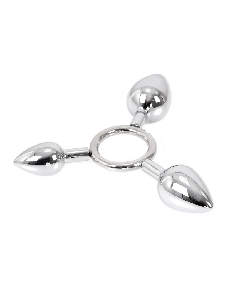 Cet accessoire est original et permet un plaisir excitant grâce à : l’anneau central de 40mm de diamètre les 3 plugs en métal avec des dimensions progressives pour varier les sensations. Les plugs mesurent 6 x 2.7cm, 7 x 3.4cm et 8 x 4cm. Ils sont amovibles