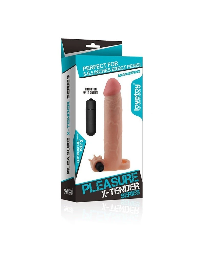 La gaine de pénis X-TENDER N°5 proposée sur le sex shop BDSM est un sextoy pour homme idéal pour rendre le sexe plus gros.Les sensations sont augmentées pour les deux partenaires. La gaine est composée de: une longueur de 20cm avec une largeur de 4cm le système de vibration qui vient stimuler le périnée l’anneau se plaçant au dessus des bourses et assurant le maintien. Forme réaliste