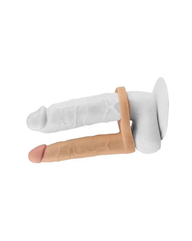 Ce gode pour la double pénétration est composé d’une longueur insérable de 14cm et d’une largeur allant de 2.5 à 3cm.Il est réalisé avec une forme réaliste et fine se plaçant sur le pénis. Il dispose d’un vibro amovible à l’intérieur pour augmenter encore plus les sensations.