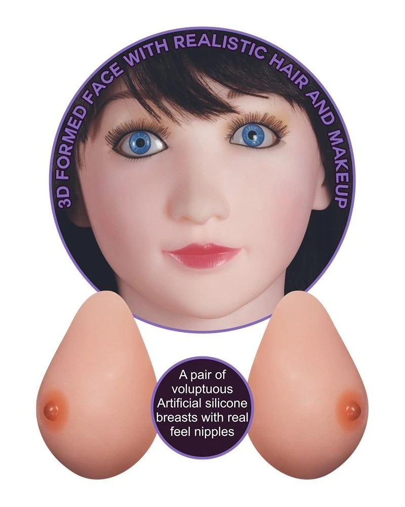 Cette poupée gonflable est idéale pour des moments très coquins.Elle se compose de : une tête rigide avec les cheveux et les yeux bleus les seins en silicone le masturbateur avec Vagin et Anus (matière TPE) les bras pour mieux s’enlacer. Le gonfleur est fourni. En matière plastique. Dimensions : 152cm