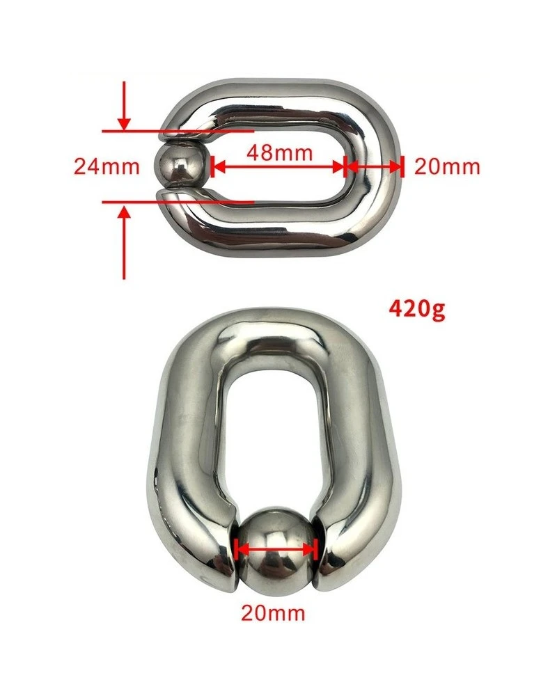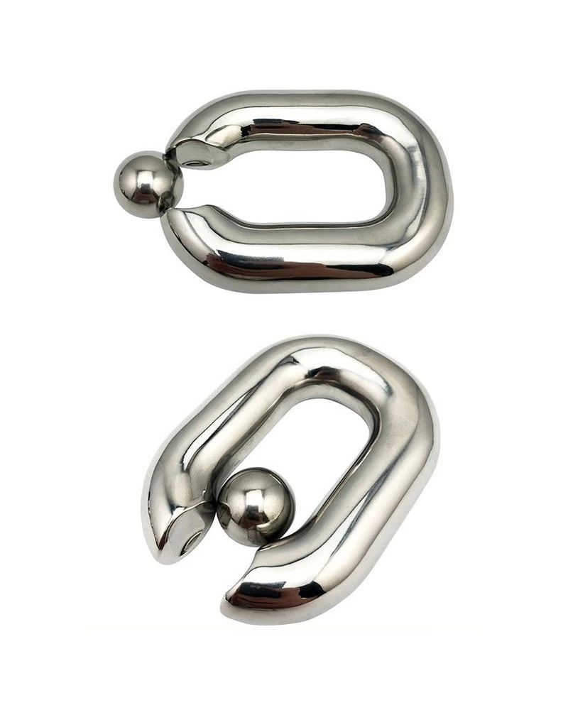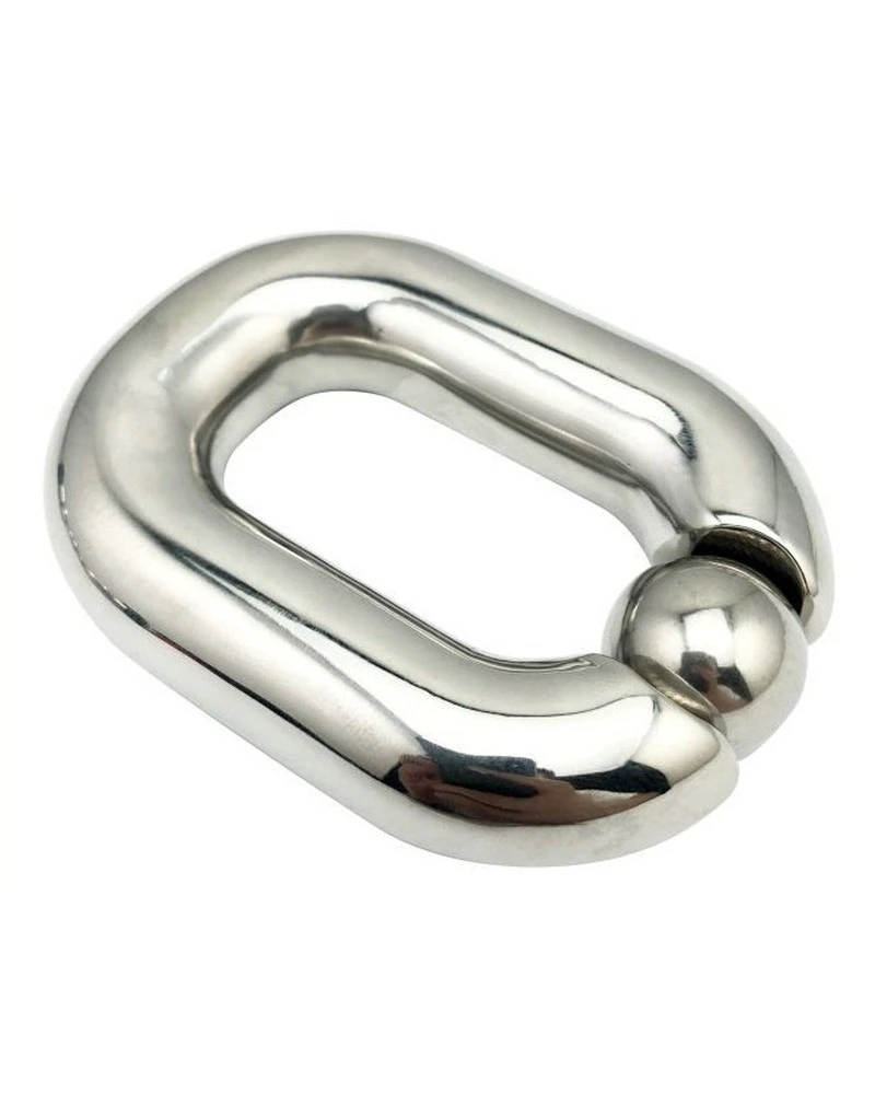 Le ballstretcher en métal Oval Ball M est un sextoy conçu pour serrer le haut des testicules. Il est composé d’une ouverture de 45 x 25mm et d’une épaisseur de 20mm. Le poids est de 425 grammes. Avec une bille magnétique amovible