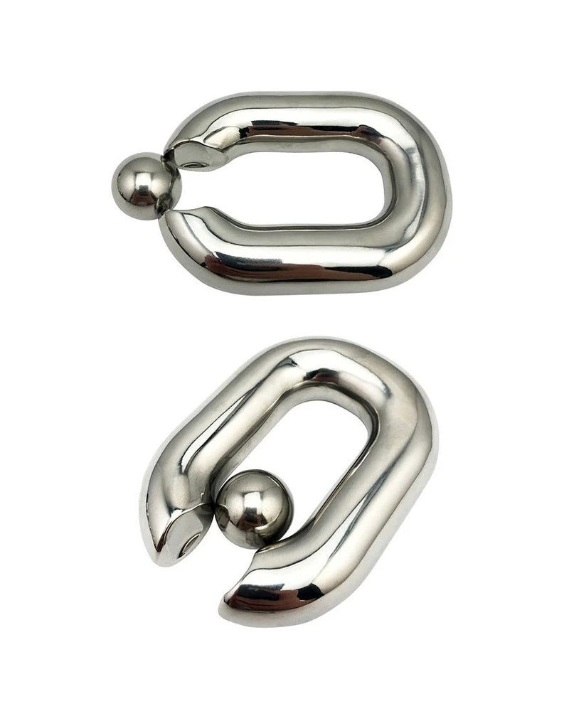 Ce ballstretcher en métal Oval S est conçu avec une ouverture de 45mm de largeur et de 20mm de hauteur. Il serre le haut des bourses.Épaisseur de 14mm. Avec bille magnétique.