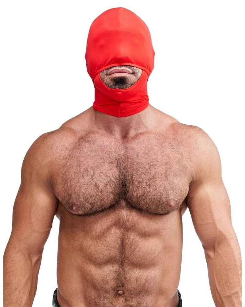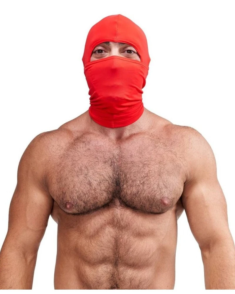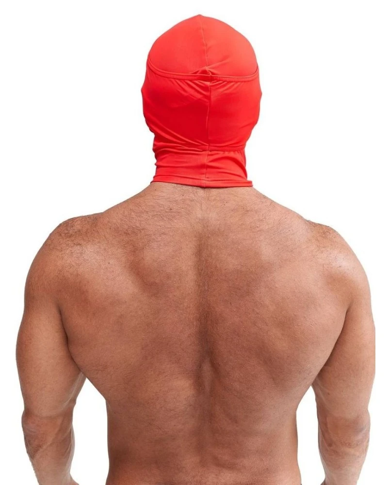 Cette cagoule rouge est fabriquée en lycra. Elle permet des jeux SM excitants.La cagoule se place de diverses façons sur le visage pour augmenter les possibilité de jeu. Matière souple et agréable à porter