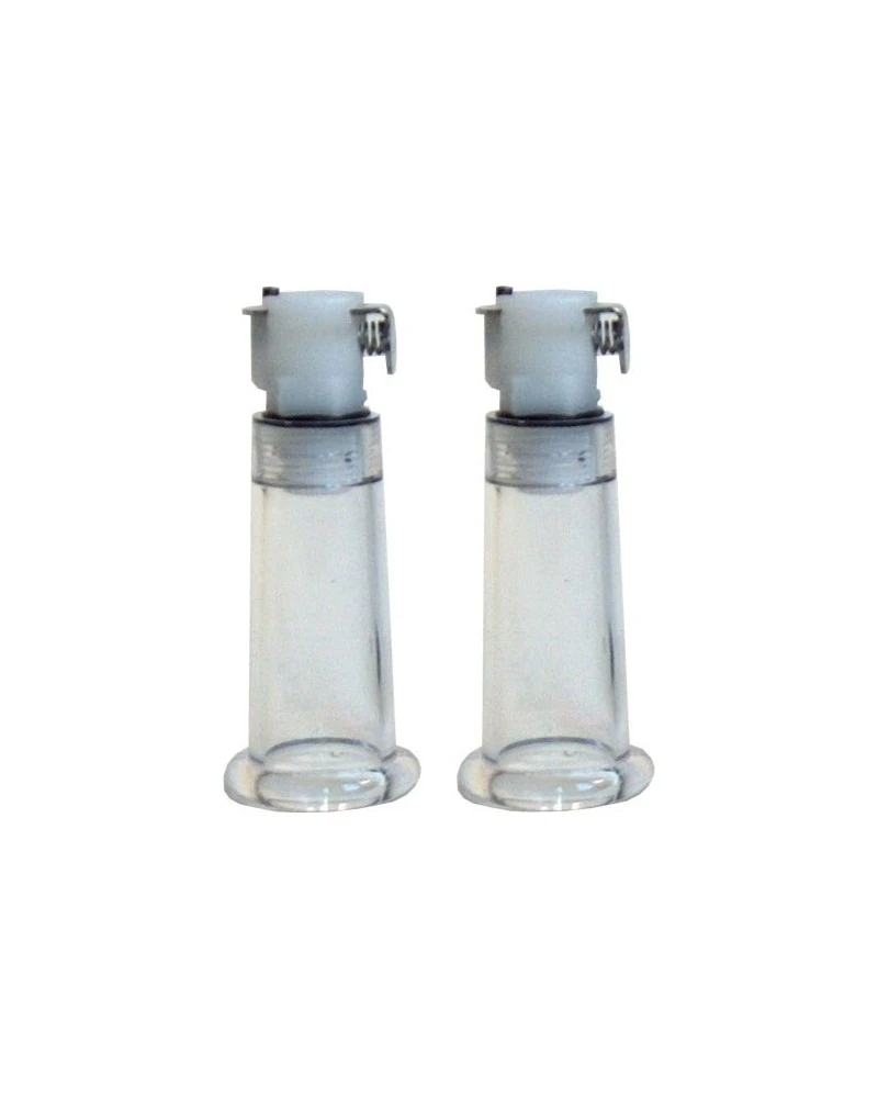 Ces 2 cylindres pour les tétons sont idéals pour les aspirer, les gonfler et les rendre plus sensibles. Ils sont composés d’une longueur de 4cm et d’un diamètre de 15mm.Avec des valves universelles. A utiliser avec une pompe adaptée