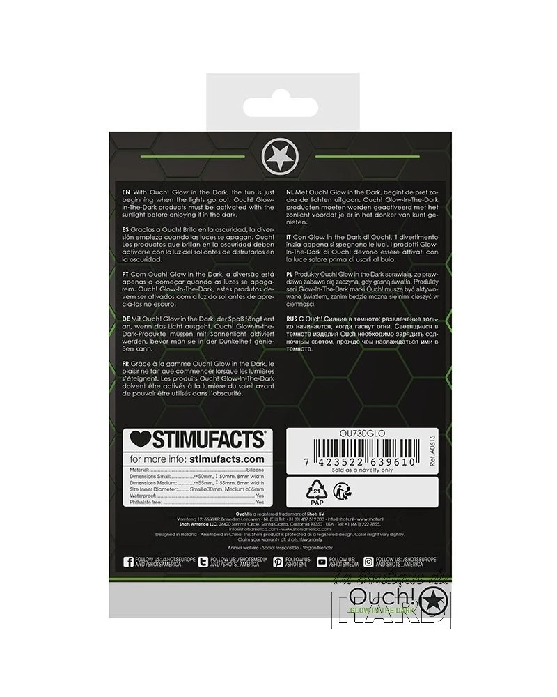 Le Lot de 2 Cockrings phosphorescents Glow Ring 33mm est un cockring élaboré par Ouch! Glow. Sa réalisation permet d’obtenir un article remarquable. Ce sera un épisode de joie fort en solo de profiter ces cockring.