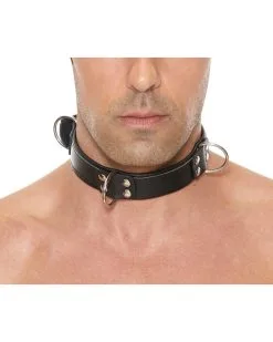 Ce collier Deluxe Bondage de la marque Ouch! est un accessoire idéal pour les moments Sm. Il se compose d’une largeur de 3cm avec un tour de cou ajustable.Celui-ci va de 38 à 48cm. Avec les anneaux et les attaches en métal. Il est fabriqué en cuir reconstitué (origine animale)