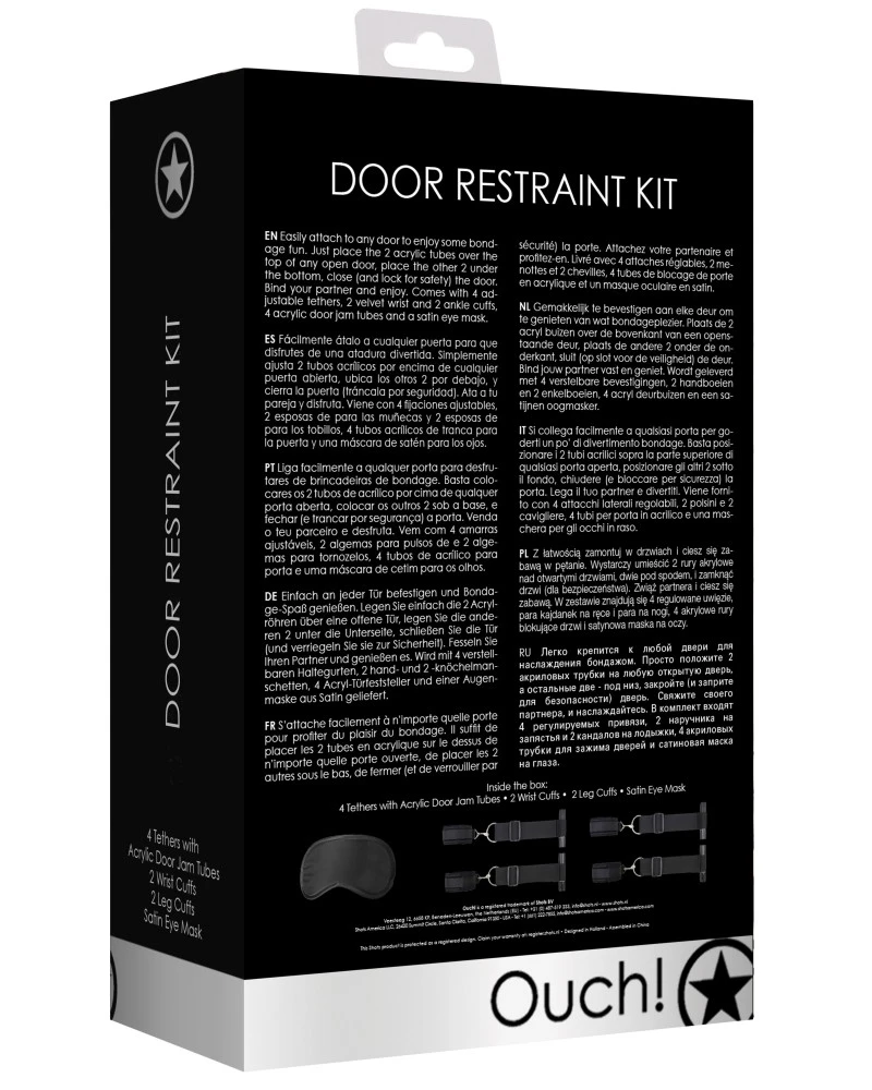 Ce kit est composé de 4 attaches de poignets et de chevilles se bloquant derrière une porte.Il permet de rendre le moment SM plus intense et fun. Avec un masque