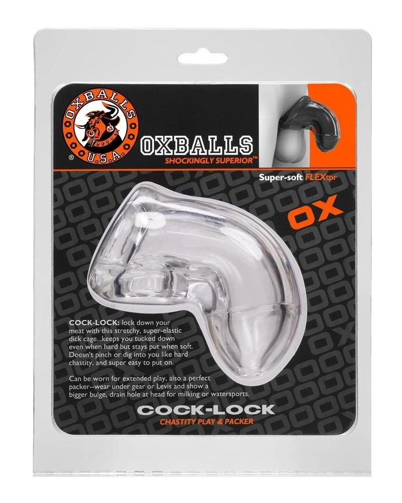 Cette gaine de pénis de la marque Oxballs est un accessoire de chasteté. Elle est transparente et conçue avec une matière flexible.La longueur est de 10cm. La largeur est de 4cm.Avec l’extrémité percée. Matière TPR