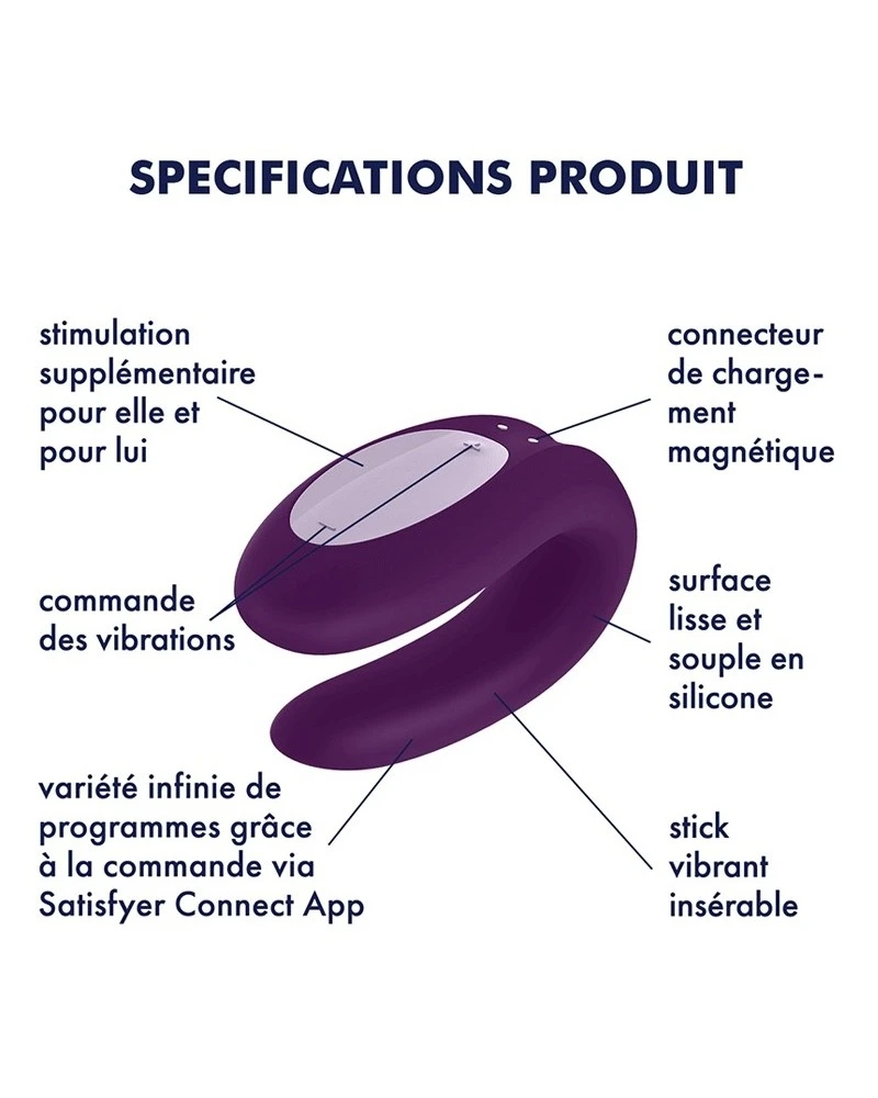 Ce pack Partner Box 3 est proposé par la marque Satisfyer et contient : le Sexy Secret stimulateur de clitoris à placer dans la culotte le Royal One, cockring vibrant avec diamètre intérieur de 25mm le Double Joy, stimulateur multi-fonctions pour les jeux en couple. Vibrations infinies avec l’application. En silicone.Recharge USB