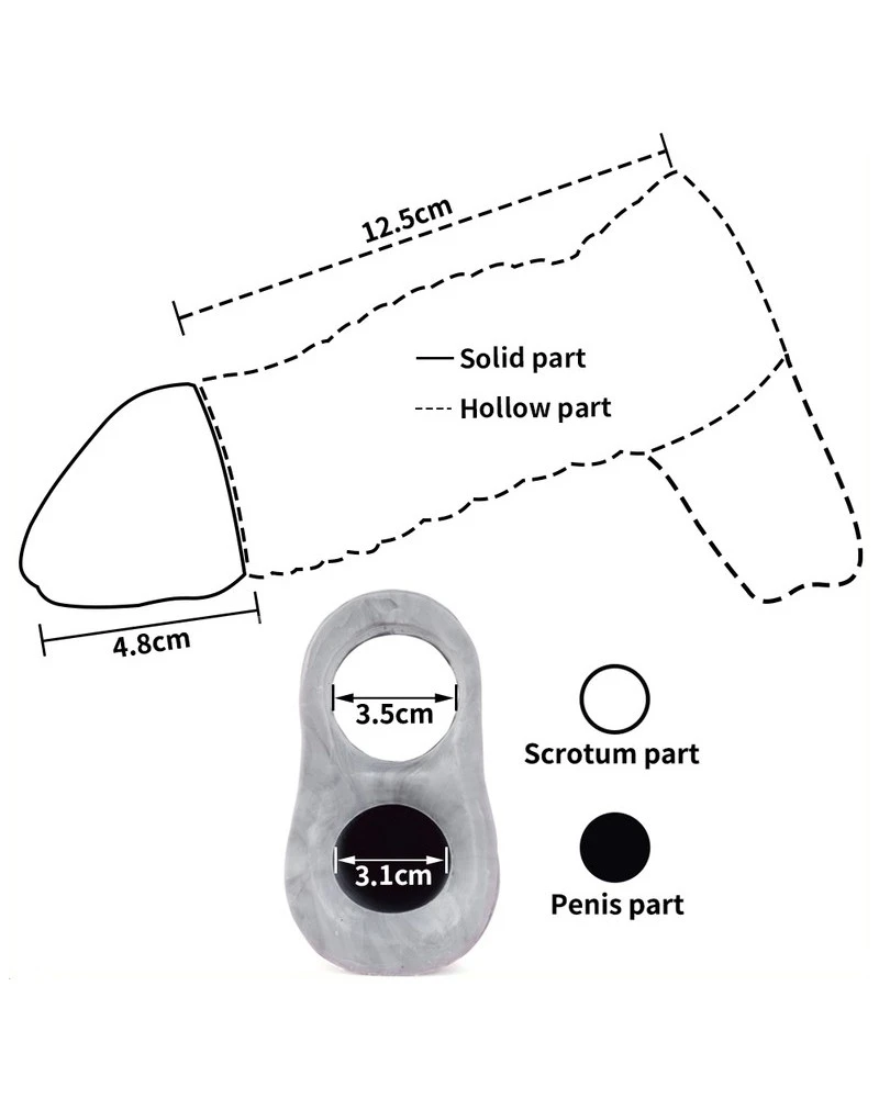 Cette gaine de pénis est composée d’une longueur de 15cm et d’une largeur de 4.5cm. La forme reprend celle des monstres fantastiques. La surface est fortement texturée.Elle se place sur le sexe et se maintient avec un anneau passant au dessus des bourses. Dimensions intérieures : 13 x 3cm. Fabriquée en silicone