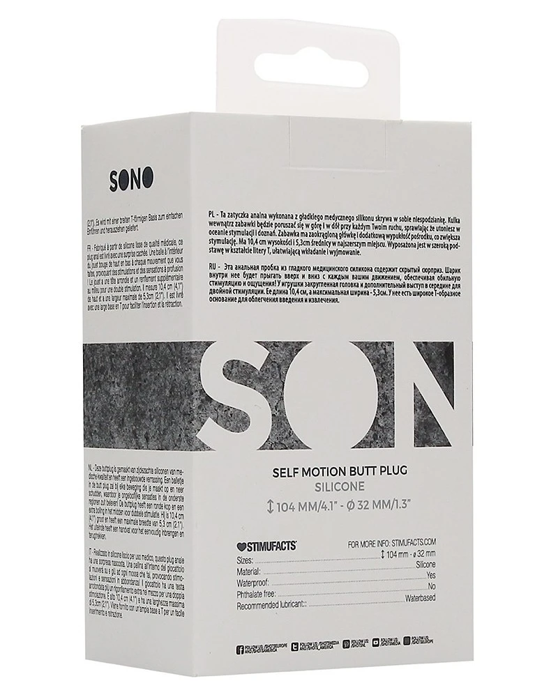 Ce plug Sono N¬∞90 est conçu avec une bille intérieure qui bouge à chaque mouvement. Il permet des sensations agréables et une stimulation optimale.Sa longueur insérable est de 9.5cm. La largeur est de 2.5cm et de 3.2cm sur les deux boules successives. La base est incurvée. Avec un poids de 60 grammes. En silicone