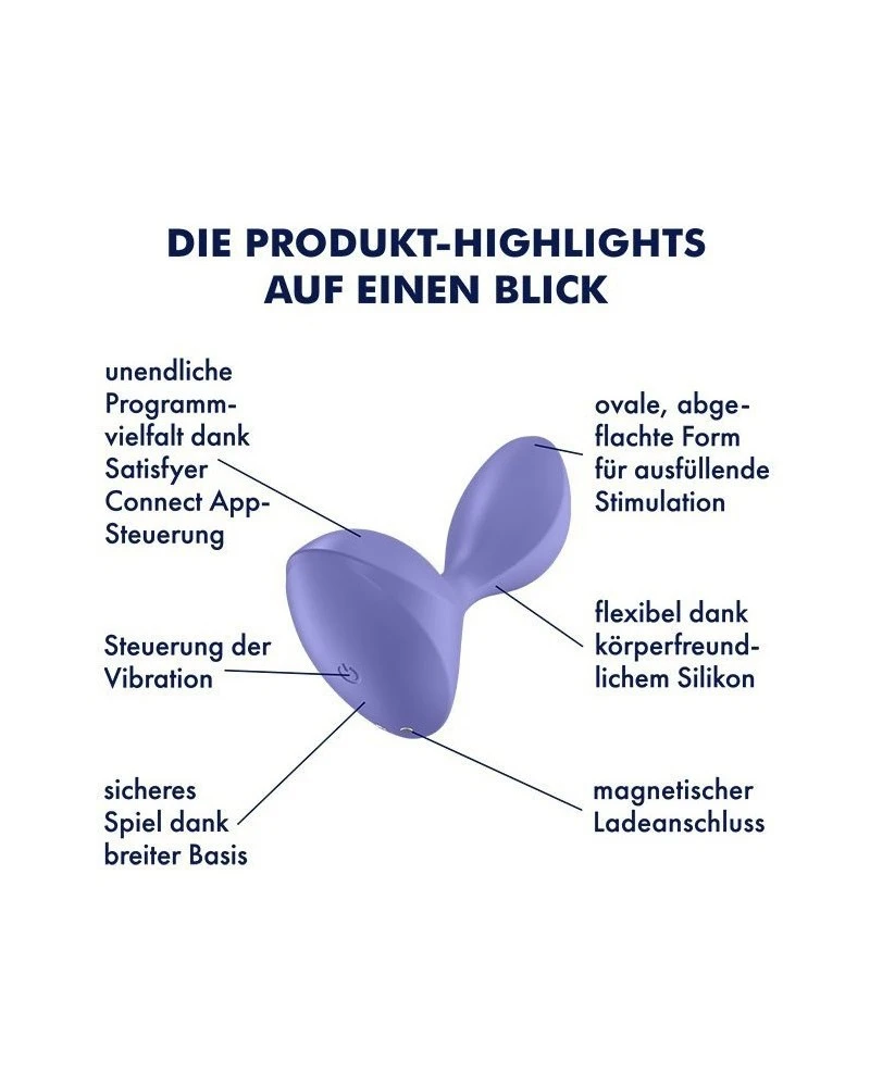 Ce plug vibrant de la marque Satisfyer peut s’utiliser avec ou sans l’application. Il possède des vibrations pré-programmées et d’autres beaucoup plus nombreuses avec l’application.La longueur insérable est d’environ 7cm. La largeur maximale est de 3.5cm. La forme est élégante et plaisante en insertion.Surface lisse