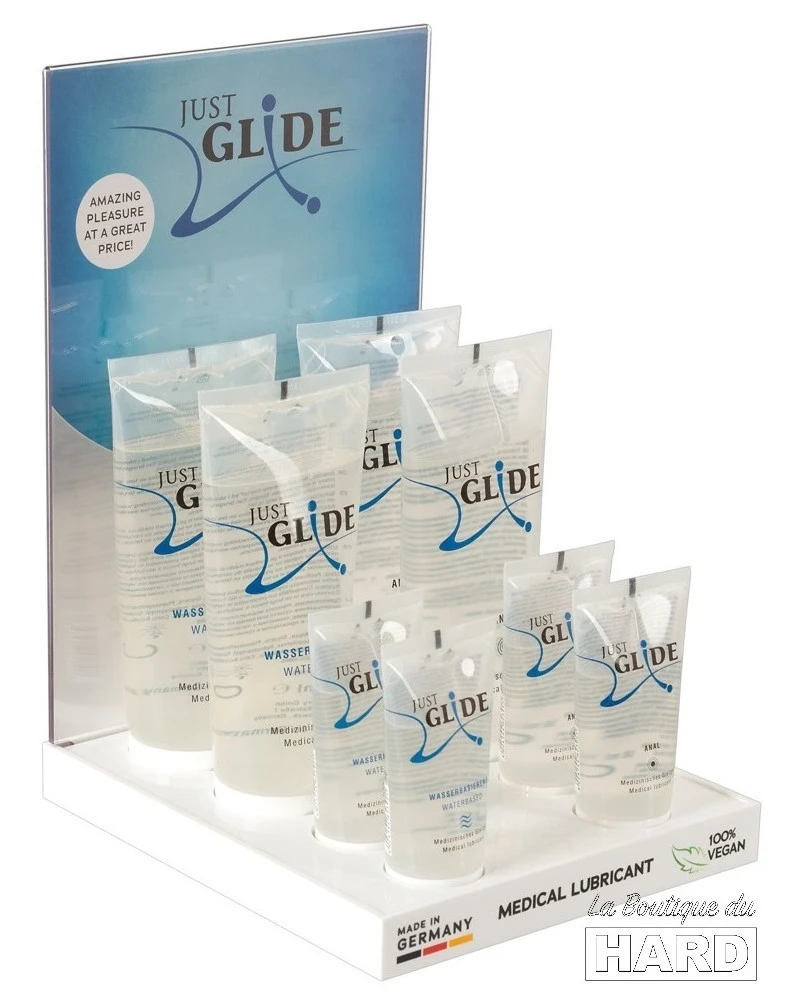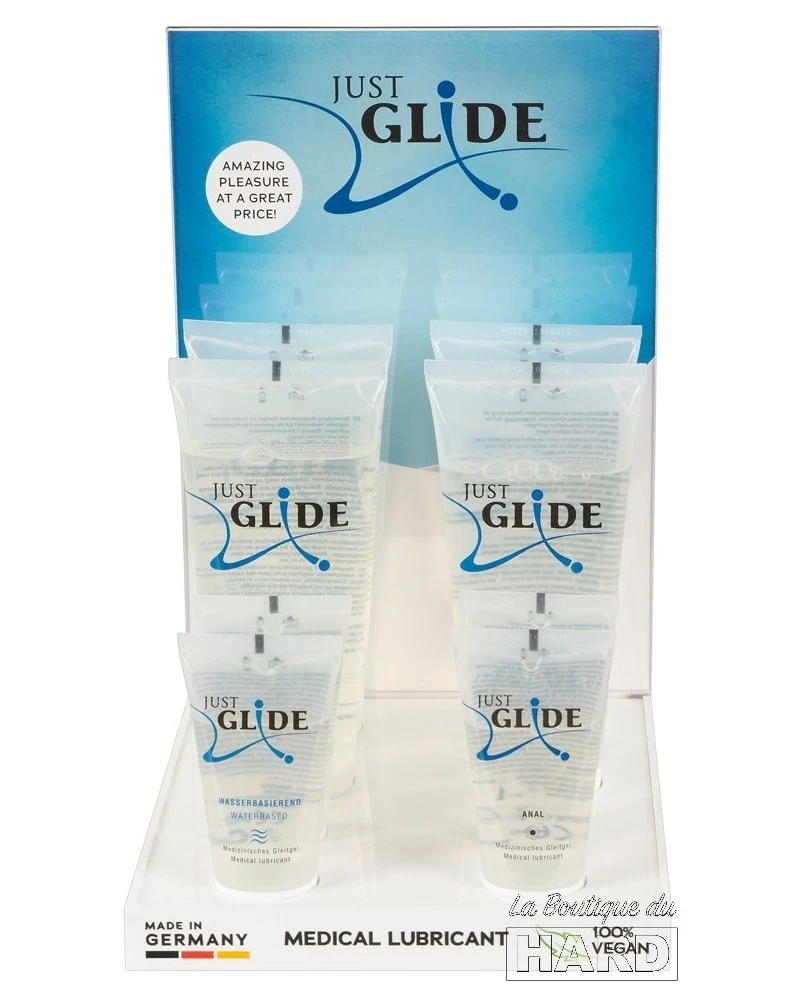 Acheter Le Présentoir et Lubrifiant Eau Just Glide sur La Boutique du Hard