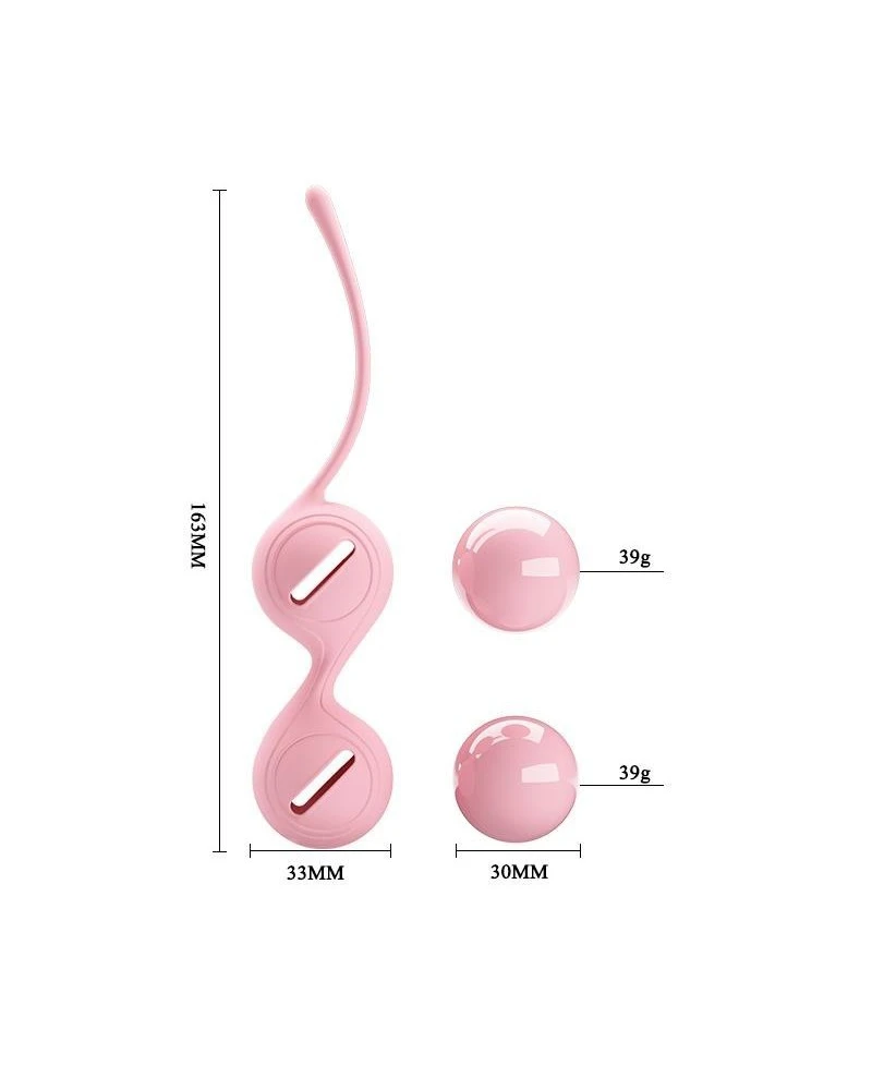 Cet accessoire que nous vous présentons sont de sublimes boules de geisha. Fabriquées en silicone par la marque Pretty Love, elles renferment dans ces sphères de 3.4 cm de petites billes qui se balanceront à chacun de vos mouvements provoquant ainsi la contraction de vos parois vaginales. Ces contractions très agréables vous aideront à remuscler votre périnée pour des orgasmes plus puissants.¬†