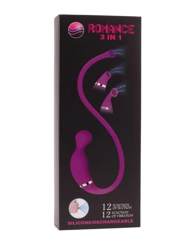 Ce stimulateur Romance de la marque Pretty Love est un sextoy conçu pour : stimuler le clitoris avec 3 embouts différents et 12 modes de succion rendre le moment encore plus excitant en insertion vaginale allant toucher le Point G. Avec 12 modes de vibrations. En silicone. Recharge USB