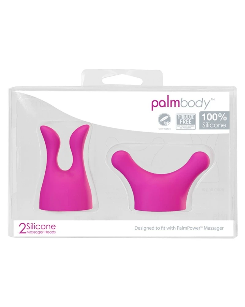 Pack comprenant 2 têtes de wand pour accessoiriser votre vibromasseur wand préféré. En silicone et doux au toucher, elles s’adaptent au Vibro Wand Palm Power mais également à tous les wands de 30 mm de diamètre. Leurs formes atypiques vous peremttront de profietr des sensations et des plaisirs inégalables. Garantis sans phtalates.