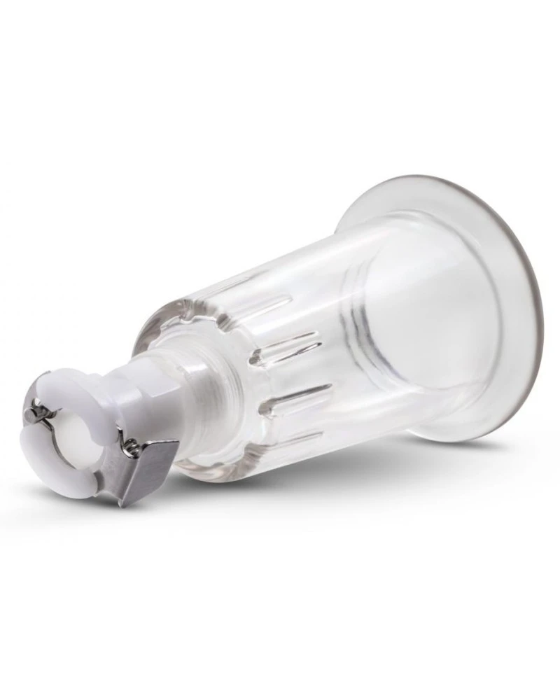 Augmentez la taille de votre clitoris et sa sensibilité avec cette coupe à clitoris. Positionné sur la vulve et raccordé à une pompe à embouts universels (non fournie), il aspire et fait gonfler le clitoris. Vous pourrez alors ressentir la moindre sensation de façon décuplée sur cette zone érogène. Dimensions : Longueur totale : 7.6cm Longueur sans embout : 5.2cm Diamètre : 30mm