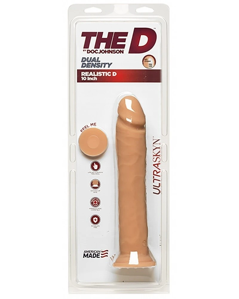 Ce gode Realistic D de la marque Doc Johnson est un sextoy conçu avec une forme droite et longue de 26cm (insérable). Le gland est sans prépuce et la surface est légèrement veinée pour des sensations encore plus réalistes. La largeur est de 5cm.La ventouse permet une utilisation plus facile. Il est fabriqué en matière TPE UltraSKyn, à la fois souple et ferme