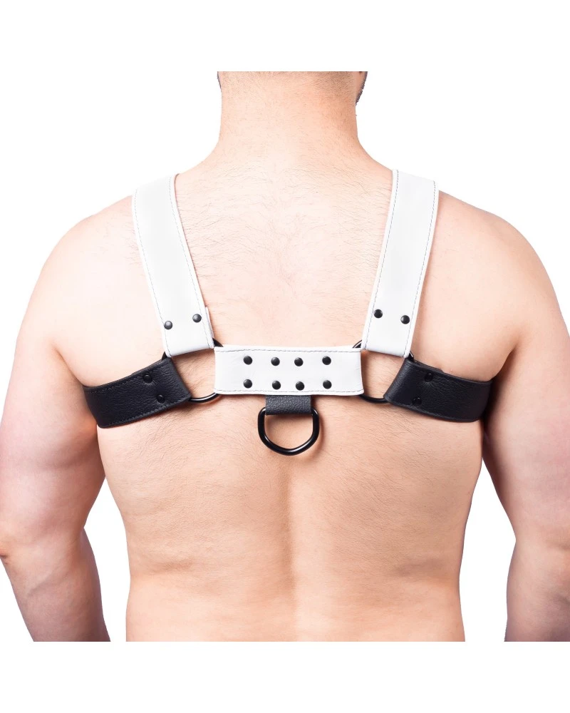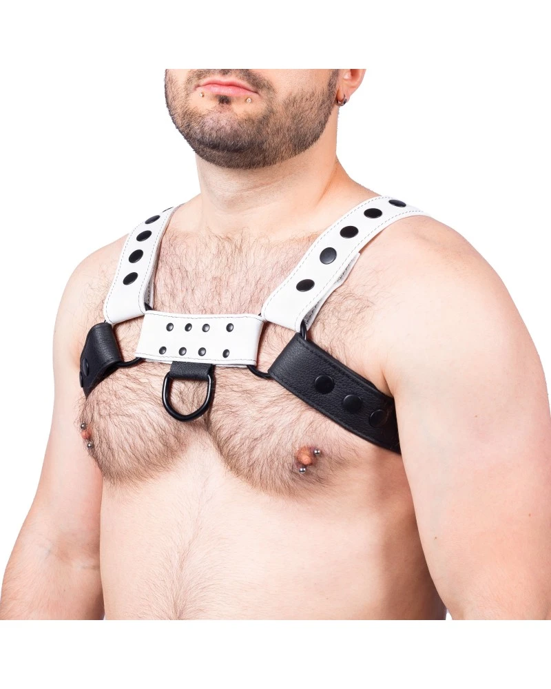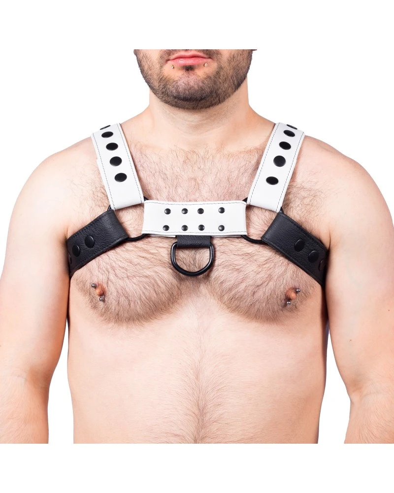 Acheter Le Harnais en cuir Snap Noir-Blanc sur La Boutique du Hard