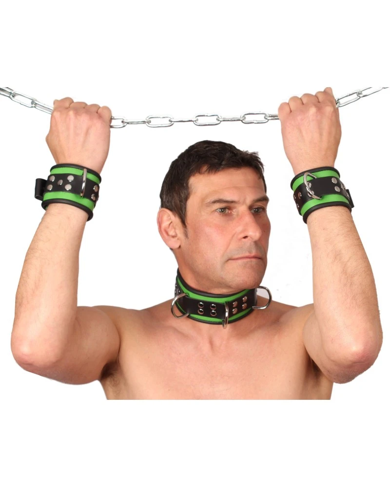Expérimentez Les Menottes en cuir Vert-Noir en stock.
