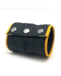 The Red Poignet Bracelet De Force En Cuir Noir/Jaune Avec Zip Taille XS