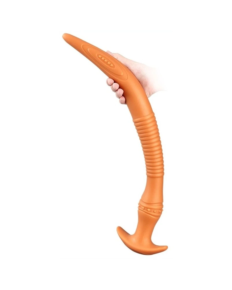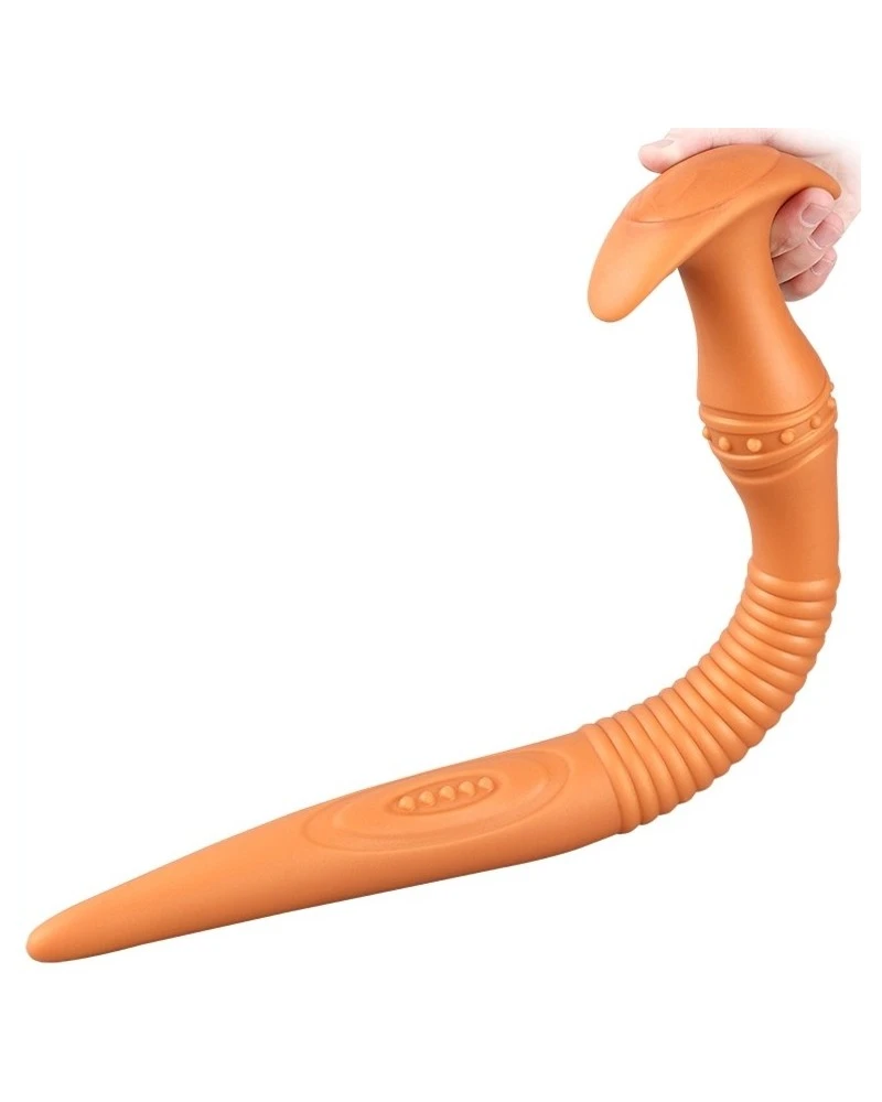 Ce gode long de la gamme Vikaelis est un sextoy de la marque TheAssGasm. Il est conçu avec une forme longue et épaisse apportant des sensations intenses.La longueur insérable est de 55cm. La largeur est progressive et va de 2 à 5.5cm. La surface du gode est texturée. Il est fabriqué en silicone souple