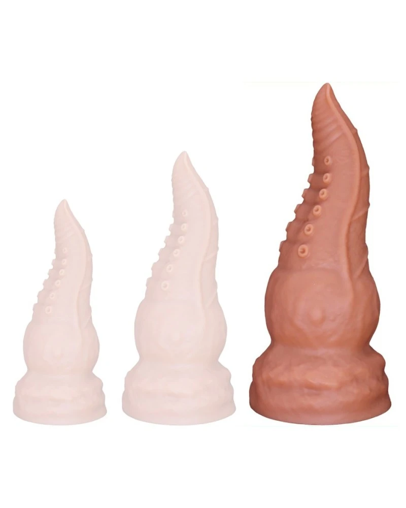 Le gode Koxis est conçu avec une forme de tentacule. Sa surface est composée de nervures et de petites ventouses.La longueur insérable est de 25cm. La largeur va de 4 à 10.5cm.Il a une base ventouse.Le sextoy est fabriqué en silicone souple