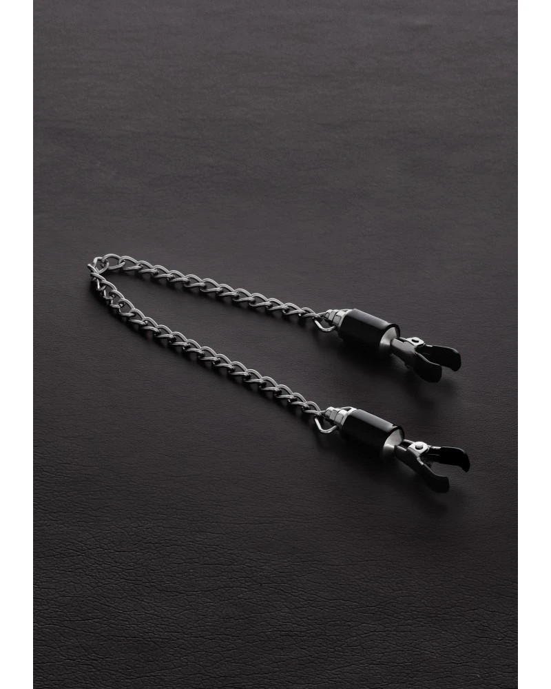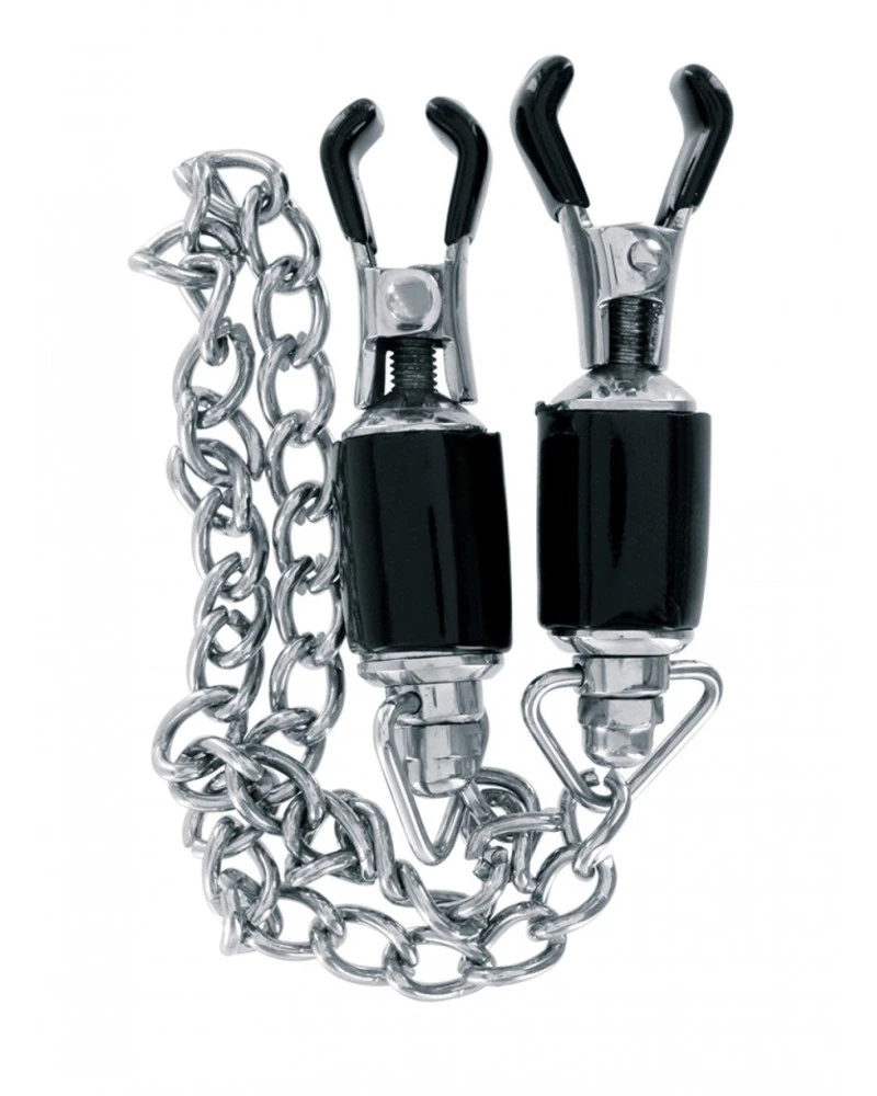 Ces pinces pour les tétons sont remarquables car elles permettent de prendre du plaisir de façon progressive en stimulant les tétons.Le système de serrage se fait par vis, ce qui donne donc une grande latitude de pincement. Les deux pinces sont reliées par une chaîne métal