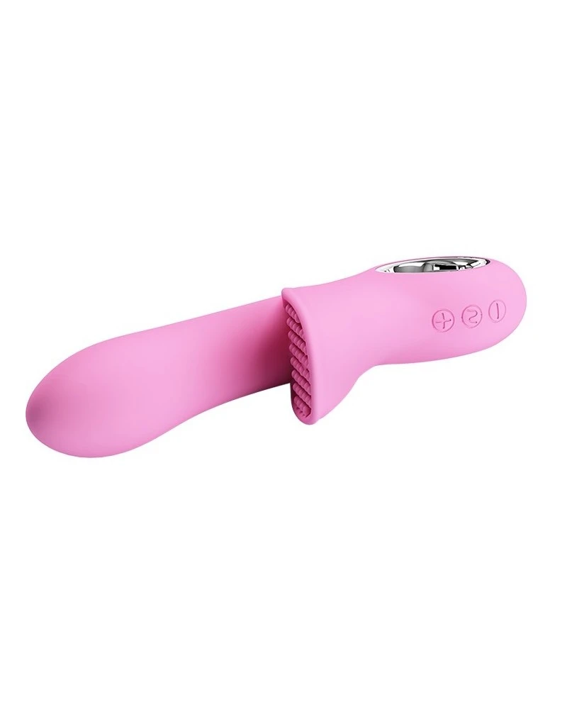Ce vibro Carol de la marque Pretty Love est un sextoy en silicone donnant des sensations agréables.Il est composé du dildo de 12cm de longueur insérable et de 3cm de large avec surface lisse.La partie latérale est conçue avec des picots pour stimuler le clitoris. La matière silicone est douce.Il possède 7 modes de vibrations. Il se recharge en USB