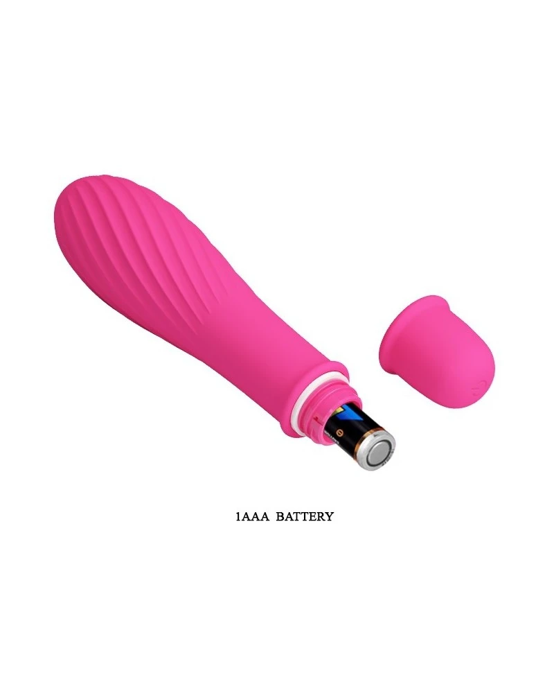 Ce vibromasseur possède une forme élégante avec une surface torsadée amenant des sensations plaisantes.Il est conçu avec une longueur de 9cm pouvant s’insérer et une largeur de 2.8cm. Avec 10 rythmes de vibrations. En silicone.Il nécessite 1 pile AAA (non fournie)